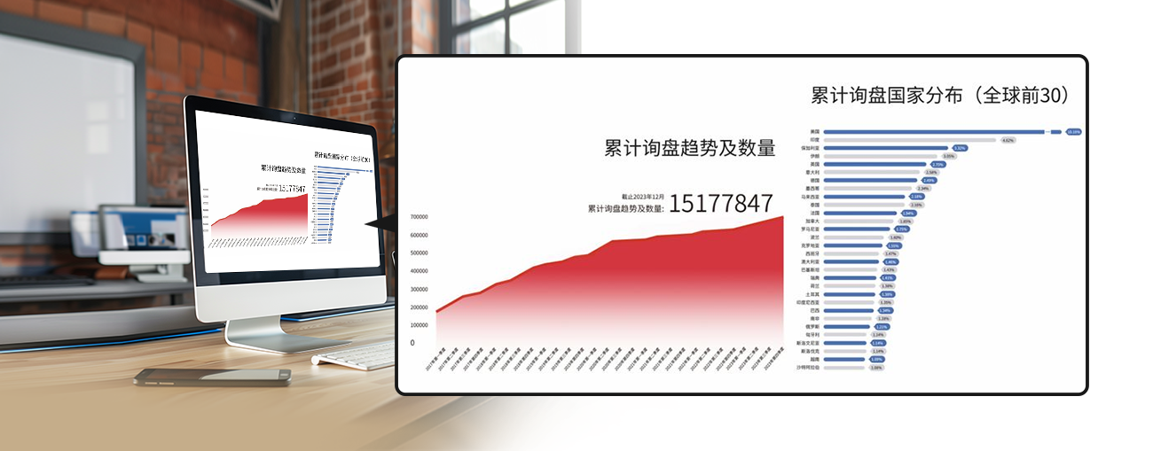 • 詢盤來路、詢盤國家、詢盤趨勢、詢盤終端等數(shù)據(jù)和趨勢。